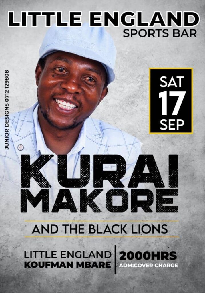 Chimurenga music crooner Kurai Makore and the Black Lions will tomorrow blast Koeffman area in Mbare where they will perform at Little England.