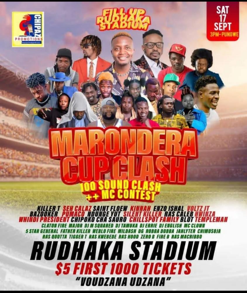 This Saturday all roads lead to Marondera’s Rudhaka Stadium where Zim dancehall artistes Killer T, Seh Calaz, Enzo Ishall, Chillspot Family, Bazooker, Pumacol, Ndunge Yut, Blot, and hip-hop musicians Voltz and Saint Floew perform from 3pm till Pungwe. This is one big gig not to miss.