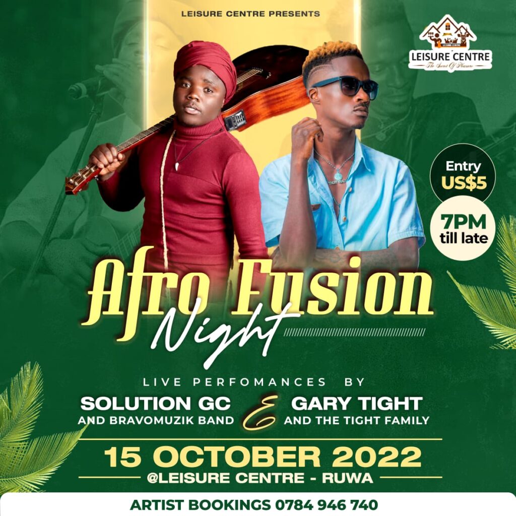 It’s Afro-Fusion night this Saturday with Garry Tight and the Tight family alongside Solution GC and Bravomuzik band at Leisure Centre in Ruwa from 7pm till late. Entry $5.