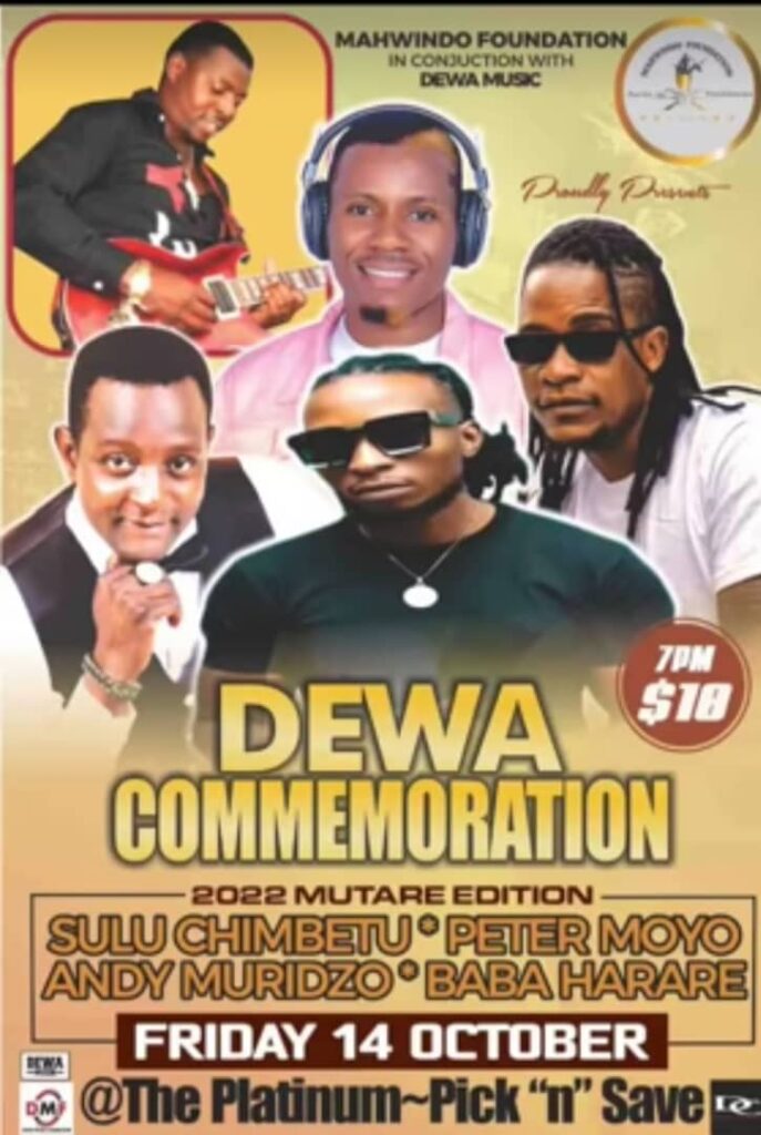 In honour of the late legendary superstar Tongai Moyo Dewa’s contribution to the local music industry, Dewa’s son, Peter Moyo, dendera musician Suluman Chimbetu, jiti crooner Baba Harare and contemporary musician Andy Muridzo headline the Dewa Commemoration gig at the Platinum Pick n Save in Mutare tonight. The gig will be commemorating the 11th anniversary since the death of the sungura superstar.