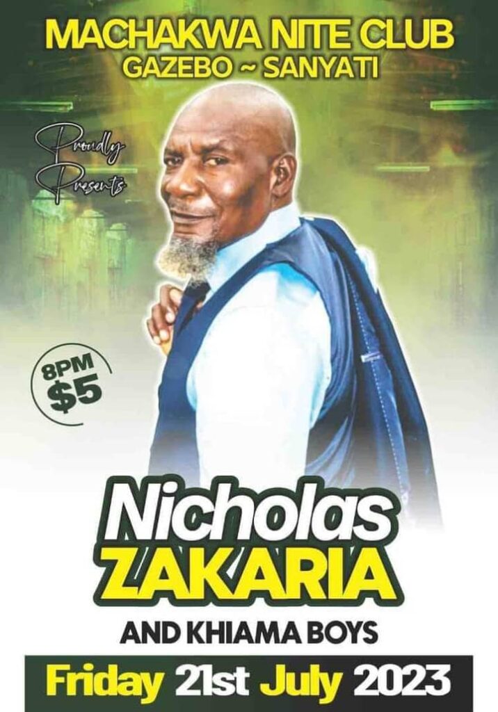 Veteran sungura artist Nicholas “Madzibaba” Zakaria and the Khiama Boys will tonight storm Machakwa Nite Club, Gazebo, Sanyati from 8pm till late. Admission: $5.