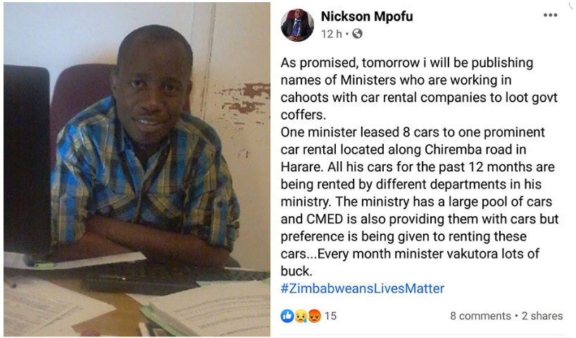 I had received information from a reliable source that Zanu PF ministers, and some other connected individuals, are leasing out their vehicles to car rental companies like Impala. The same individuals then collude with civil servants in charge of procurement in their departments to rehire the same vehicles to cover shortfalls in their ministries.– Zimlive